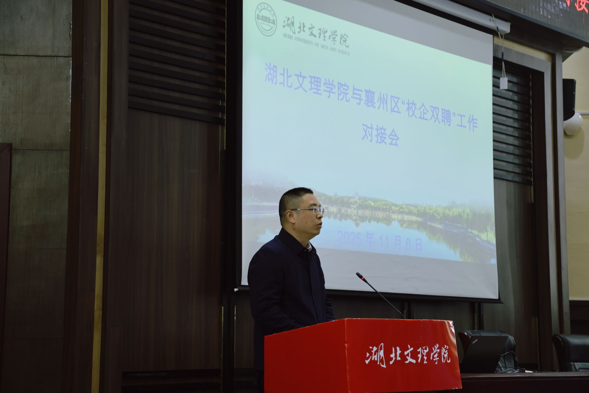 (人事处 通讯员 孙娇)11月6日,学校与襄州区举办“校企双聘”人才对接会,襄州区委常委、组织部部长向智勇,学校党委副书记、副校长张樊出席对接会。会议由学校人事处处长鲍国昌主持。