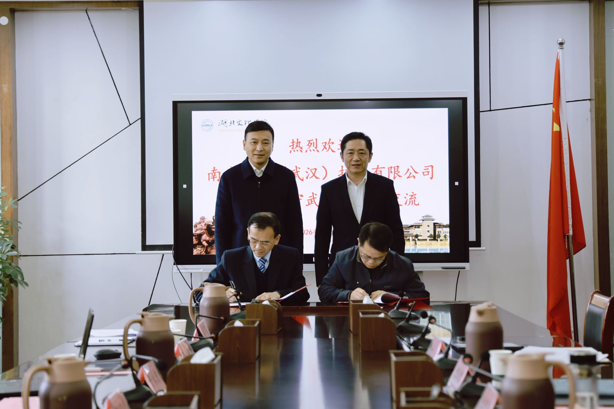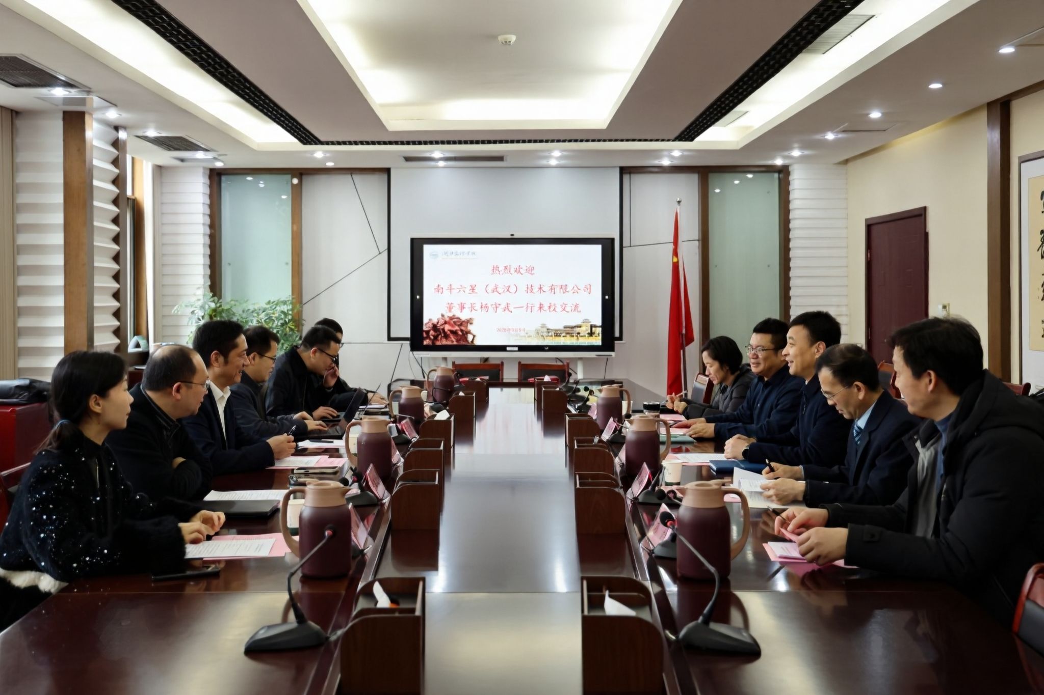 (汽车与交通工程学院 通讯员 张鹏飞)3月5日,学校与南斗六星(武汉)技术有限公司(以下简称“南斗六星”)战略合作备忘录签署仪式举行。南斗六星董事长杨守武,学校校长杜国锋出席签约仪式。