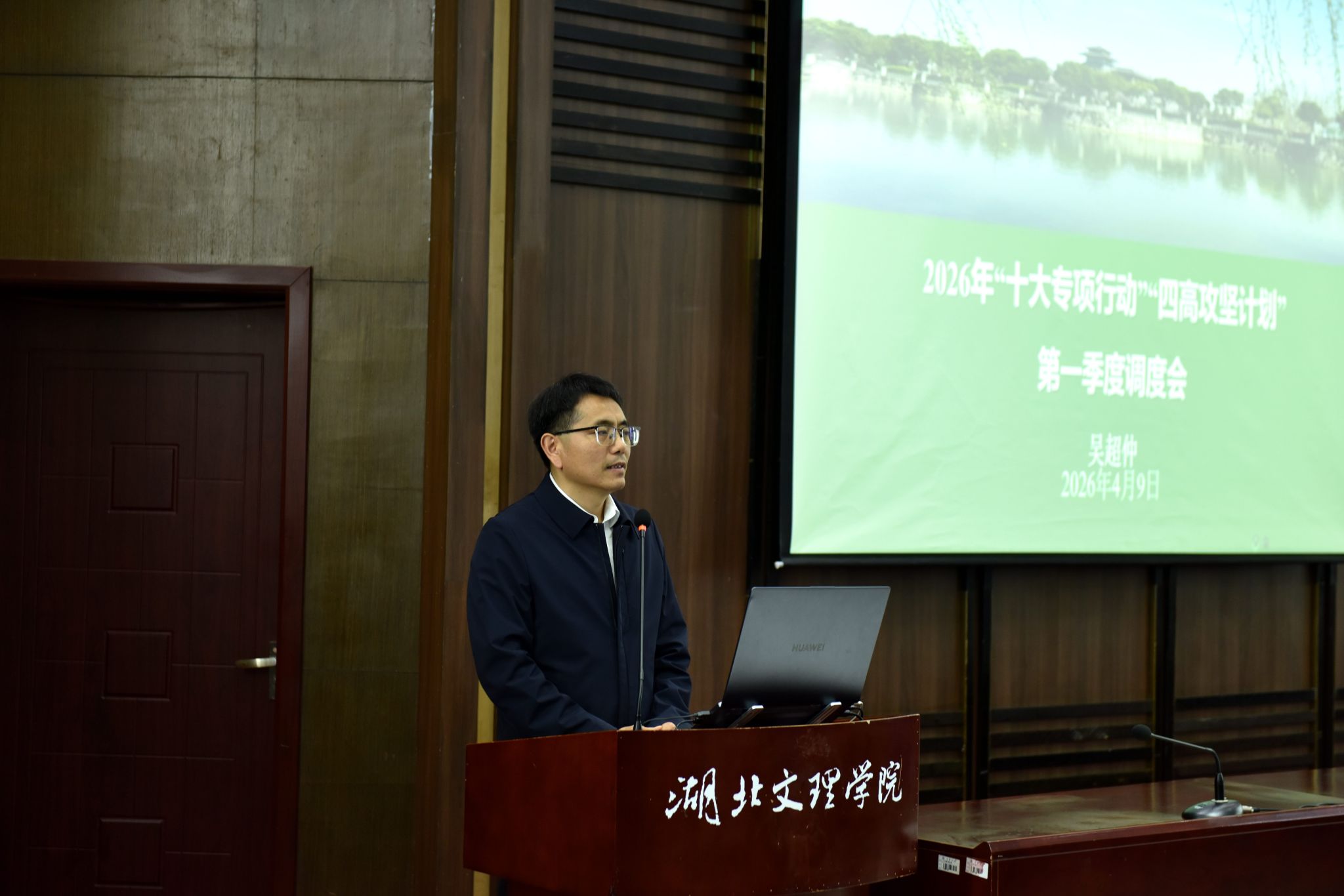 (发规处 通讯员 陈都河川)4月9日,学校召开2026年“十大专项行动”“四高攻坚计划”第一季度调度会。全体在校校领导、中层干部参加会议。会议由校长杜国锋主持。